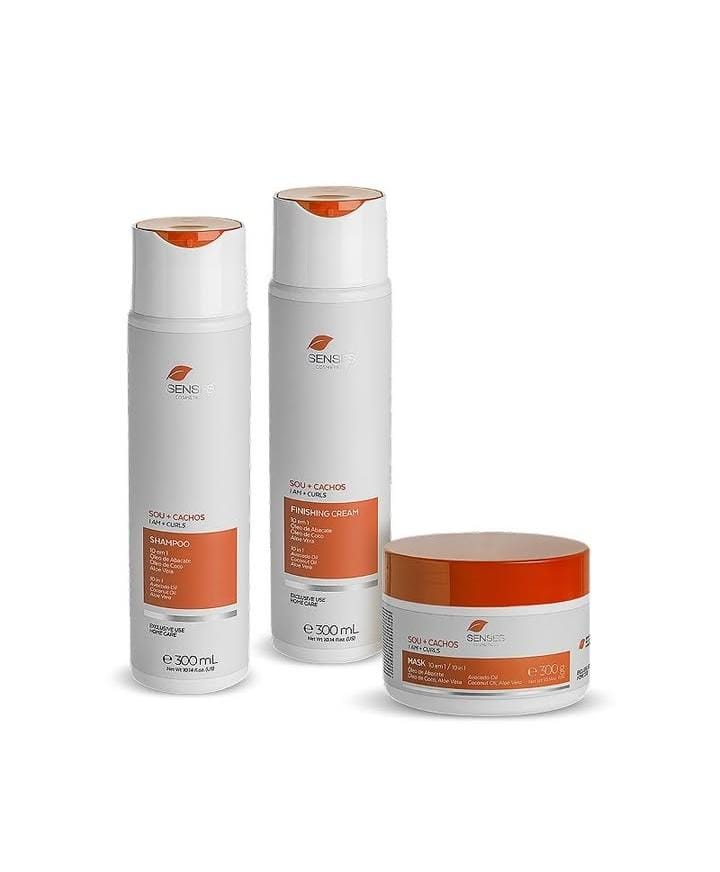 O kit foi desenvolvido para cabelos cacheadas e ondulados, promovendo hidratação, nutrição e definição dos fios.